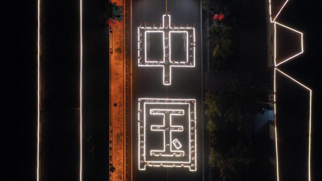 灯光秀活动现场,广州援疆工作队与当地群众摆出"中国"字样。
