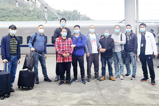 办案民警在四川抓获嫌疑人刘某(右四)、赖某(穿红格子衣服者)