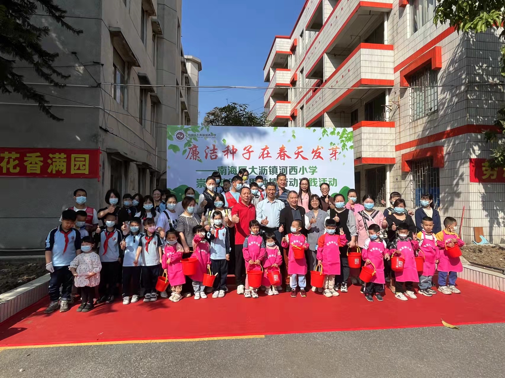 新快报讯 在第44个中国植树节到来之际,3月12日上午,“廉洁南海,清风校园”--2022年南海区第八届校园廉洁文化节系列活动之“廉洁种子在春天发芽”大沥镇崇廉敬德花果种植劳动实践启动仪式在河西小学举行,活动当天还进行了“花满园亲子俱乐部”花果种植基地的揭幕仪式。50多家来自河西小学、盐步三中和河西幼儿园的亲子们欢聚一堂,在明媚的春光下体验种植乐趣。