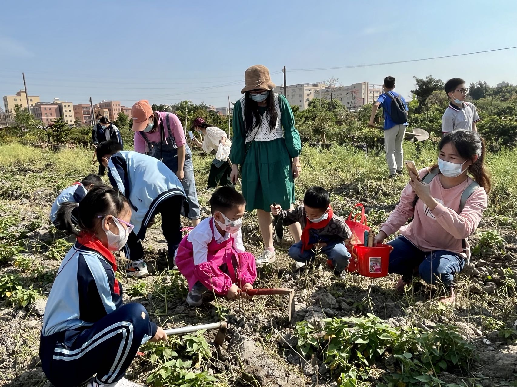 “锄地的姿势要正确,得用尽全力挖,坑才能更大更深。”“拿点种子放进土里。”“妈妈,我去浇水。”......在“花满园亲子俱乐部”花果种植基地上,一派热火朝天的劳动景象。