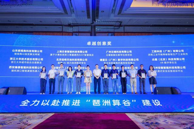 深圳小库科技有限公司、广东茉莉数字科技集团股份有限公司、北京大数医达科技有限公司获得大赛典型实践奖,广州云蝶科技有限公司、讯飞幻境(北京)科技有限公司、工数科技(广州)有限公司等 12 家公司获得大赛卓越创意奖,中国移动通信集团广东有限公司广州分公司获得大赛最佳人气奖。