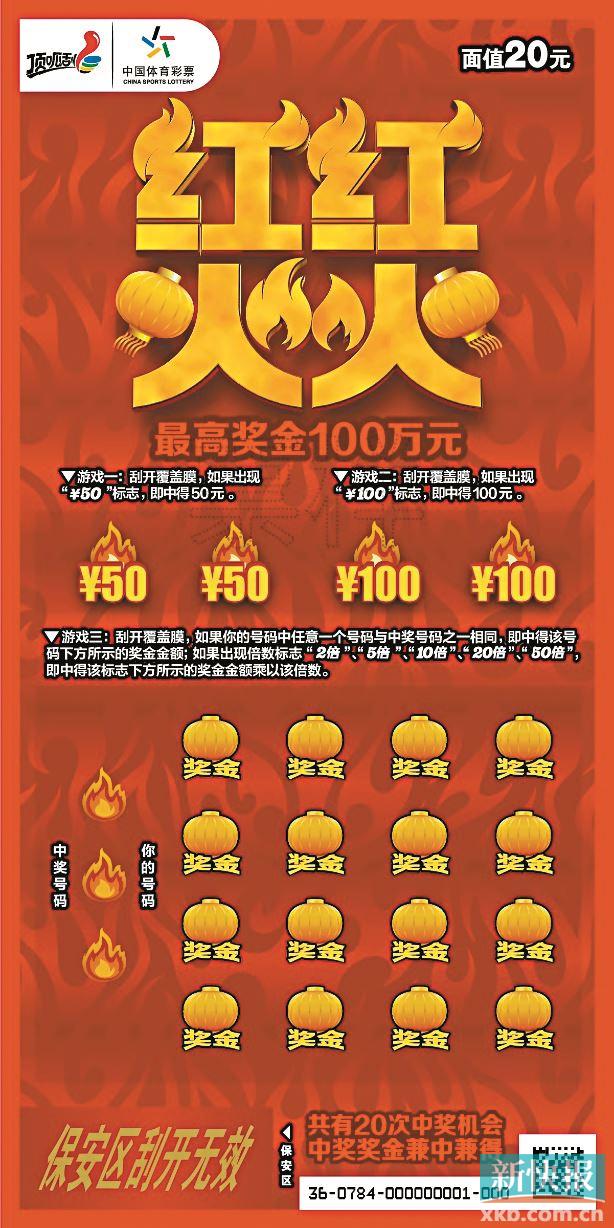 新快报讯 记者陆妍思 通讯员粤体彩报道 红色作为中国文化的底色,深受大家喜爱。它象征着活力、热情,也代表了自信、张扬;它闪耀着夺目的力量和光芒,也寄托着火红的梦想与期望。近日,中国体育彩票上新了“红红火火”即开票,用耀眼的红色作为背景,搭配火焰和红灯笼,向广大彩民送上火热的惊喜和祝福。