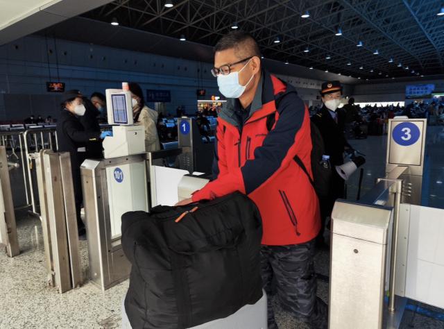 9 时 58 分,G6553 次高铁列车开始检票,旅客们有序排队,有的刷身份证,有的刷港澳台通行证、护照等,快速通过闸机进站。