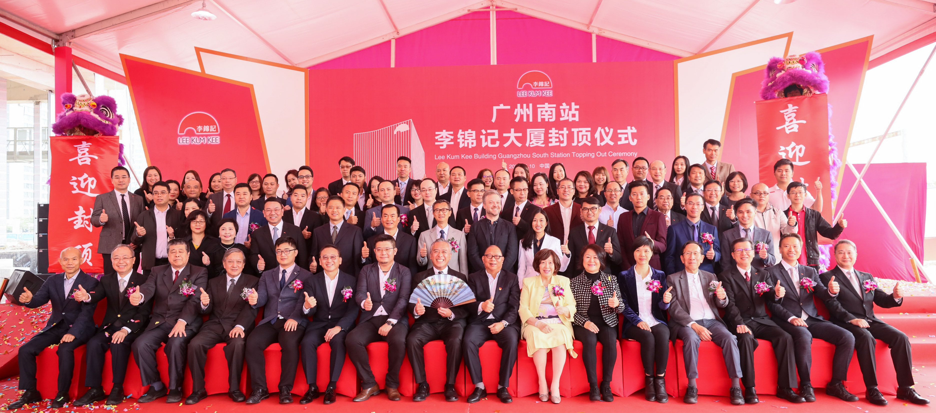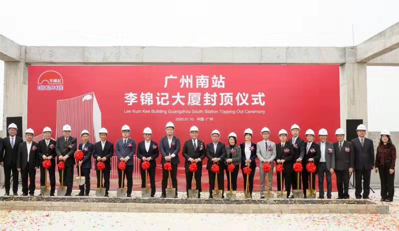 (李锦记酱料集团、番禺区政府、广州万科及相关各方共同庆祝广州南站李锦记大厦顺利封顶)