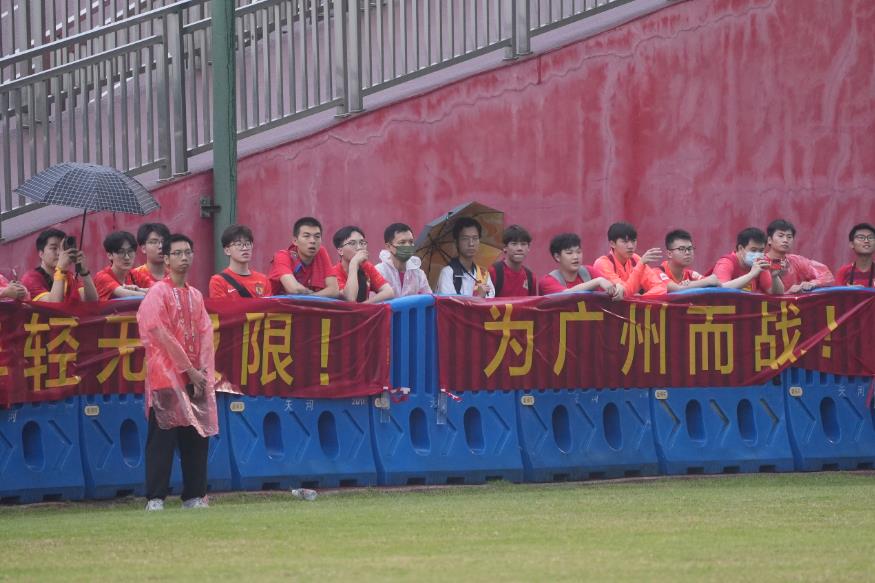 本周中,广州队迎来了降级后的首个开放日,位于番禺的基地内,涌入了数百名球迷。他们拿着“年轻无极限!为广州而战!”的标语,有节奏地为球队助威。