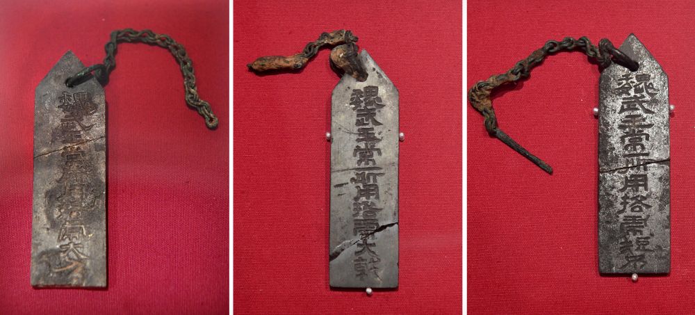 2009年11月11日,考古队员清洗一块石牌残片后发现其上有“魏武王常所用”的字样,领队潘伟斌非常重视,安排大家立即对近日出土的其他石牌残片进行清洗,发现恰有残片能与之组成一枚完整圭形石牌,石牌上有铜链,刻有“魏武王常所用挌虎大戟”。