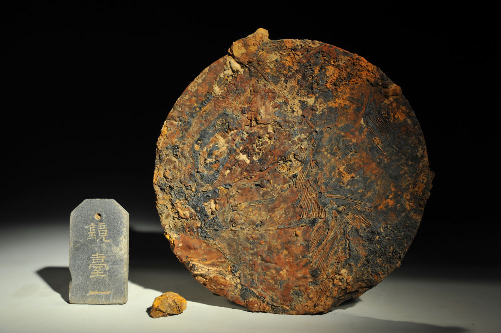 “璧、鼎皆为礼器,数量的多少代表了墓主人身份的高低。能够用4件石璧、12件陶鼎随葬反映了墓主人帝王一级的身份。”孔德铭说,汉代错金铁镜发现较少,技术要求比铜镜高,反眏了中国古代高超的手工业生产技术。