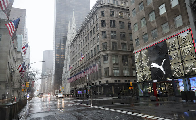 3月23日,美国纽约第五大道上空空荡荡。(新华社记者王迎摄)
