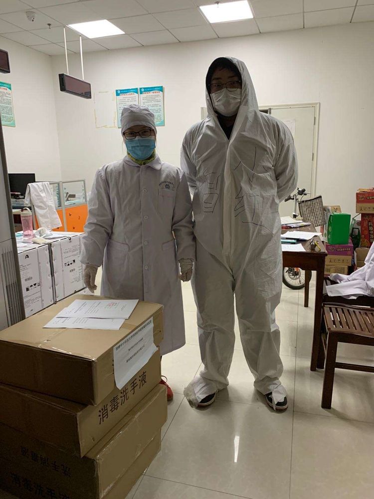 在武汉志愿者组织影子梦之队的协助下,冒着大雨把消毒液送到了一个个急需的地方。据统计,这批医用免洗手消毒液送往武汉医院、社区卫生服务中心、医疗队定点酒店、志愿者组织共22家单位95箱。