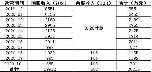 尽管库洛科技和英雄互娱都没有发布《战双帕弥什》的具体数据,但基于数据平台统计,GameLook整理了游戏在2019年12月至2020年10月期间的iOS平台预估收入,供同行参考。